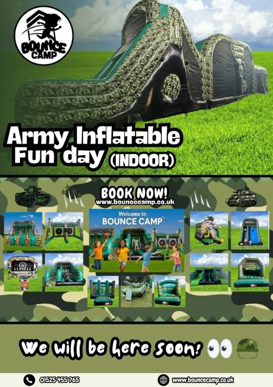 The Army Nerf Inflatable Day May 17th brings structured Nerf gameplay to Northampton with a 90-minute session designed for children, teens and mixed-age groups. This event combines inflatable arenas with supervised team-based games, creating an organised and active experience suitable for ages 4+.